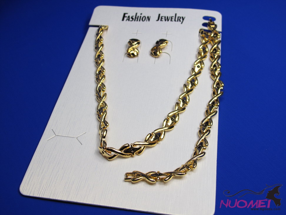 FJ0106Golden chain necklace and earrings jewelry