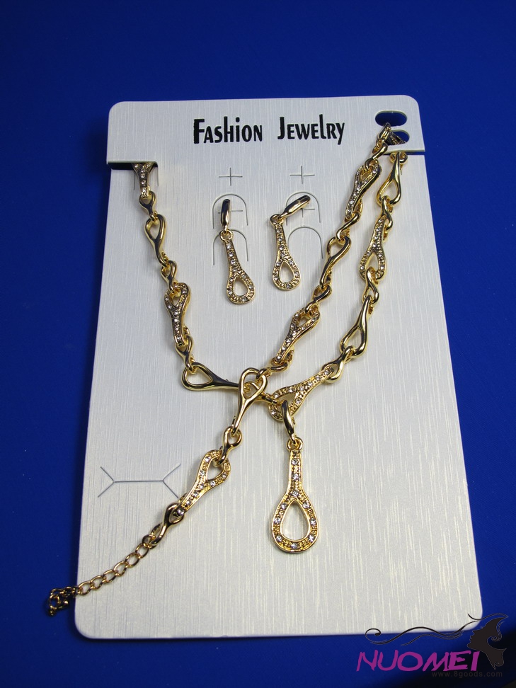 FJ0281Golden chain necklace and earrings jewelry