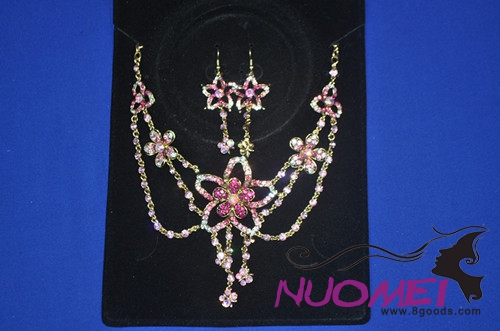 FJ0046pink and golden flower shape necklace earrings jewelry