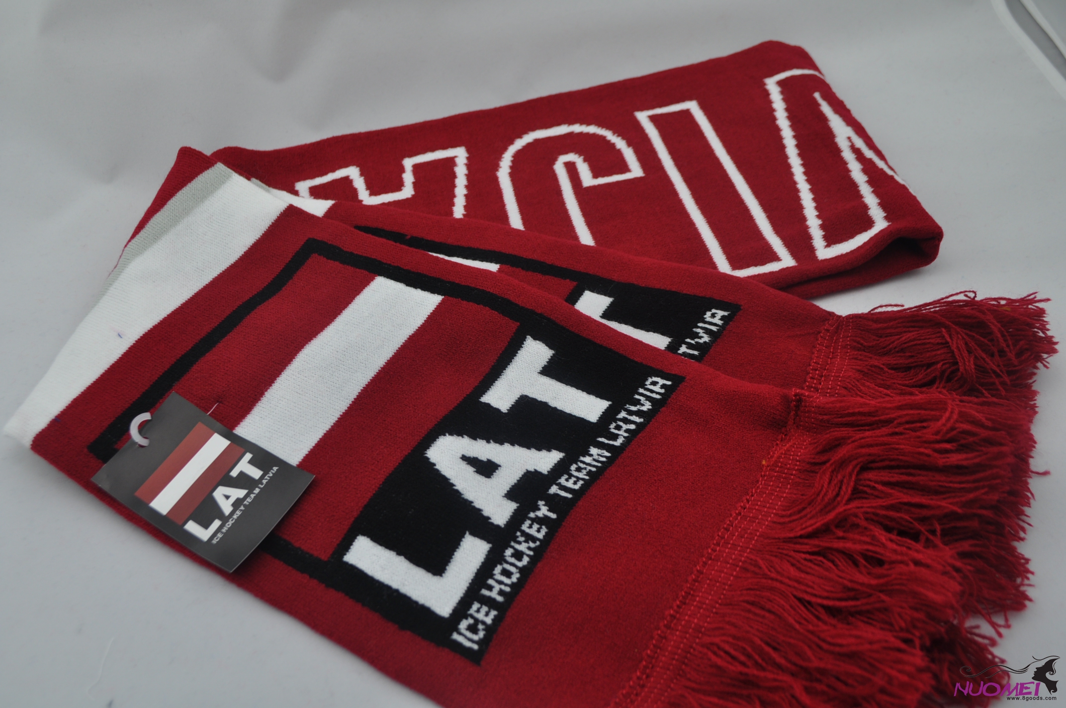 FS0007Wine red scarf with flag pattern and tassels