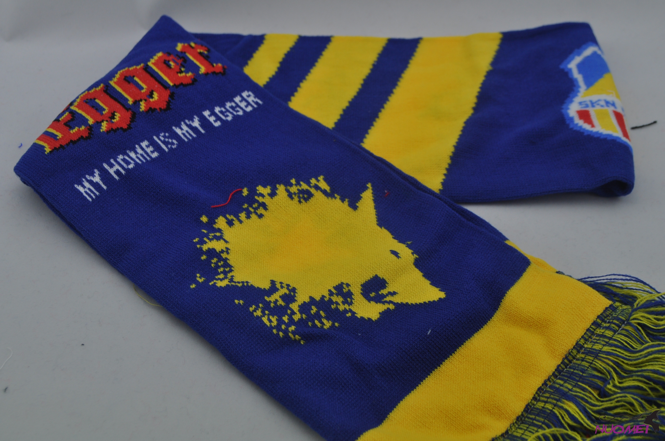 FS0019Fashion navy blue scarf with yellow stripe and red pattern