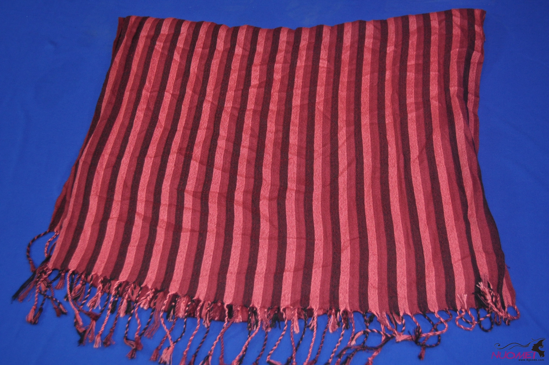 FS0044Fashion red stripe scarf with tassels