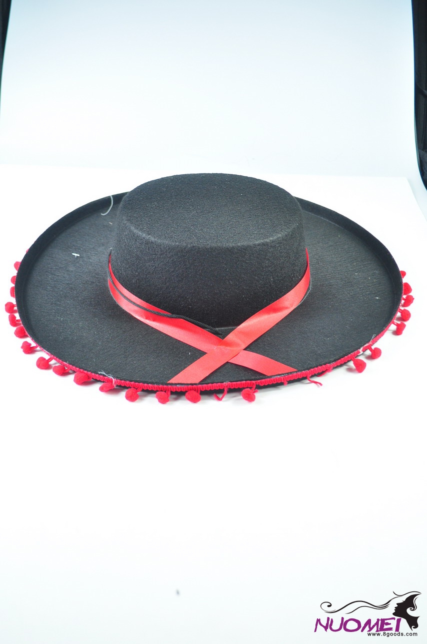 SK7669Carnival black hat with red tassels and satin for maquerade