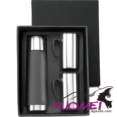 Stainless Steel Metal Double Walled Vacuum Flask (500Ml) & Two Stainless Steel Metal Mug Set (300Ml); Supplied in a Deluxe Gift Box. Minimum Quantities Apply.