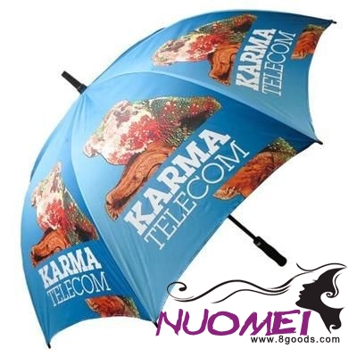 Top Quality Golf Size Automatic Umbrella. Stormproof Fibreglass Stem & Ribs for Increased Flexibility & Stability in Stormy Conditions, Automatic Function for Quicker Opening, Stylish Black Eva Handle with Decal Option & Integrated Push Button. Minimum Quantity: 1.