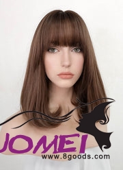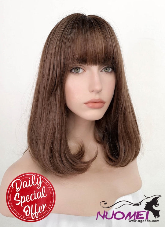 D0976 Chestnut Brown With Dark Roots Straight Synthetic Wig