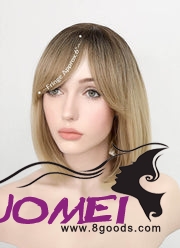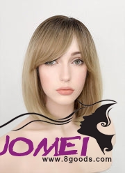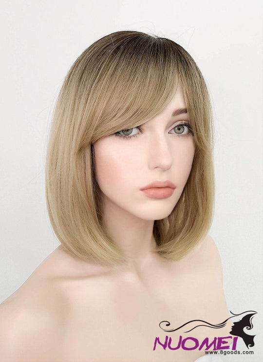 D0986 Blonde With Dark Roots Straight Bob Synthetic Wig