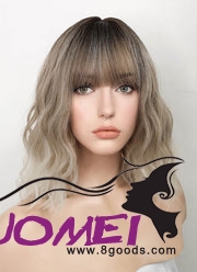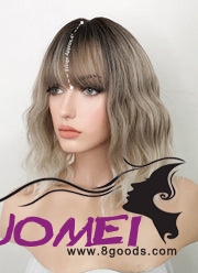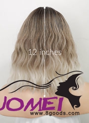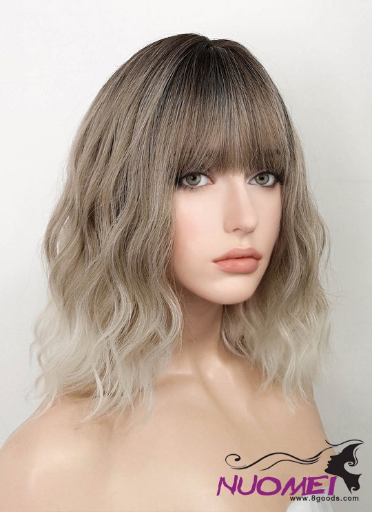 D0992 Two Tone Blonde Ombre with Dark Roots Wavy Bob Synthetic Hair Wig