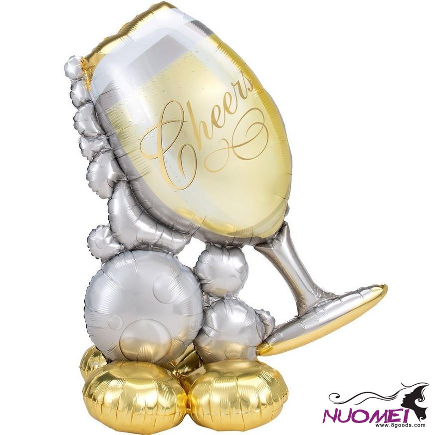 Let guests know it's time to raise a toast with an elegant giant air-filled balloon! This charming display features a tipping wine glass with silver bubbles spilling out, all on a base of gold balloons. The AirLoonz balloon can be inflated with a Balloon Pump (sold separately) using the included straw — no helium required! Decorate for your wedding or anniversary party with this free-standing balloon.