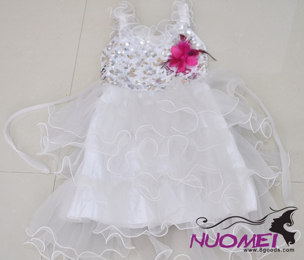 C0018white long dress with red Corsage, cute princess